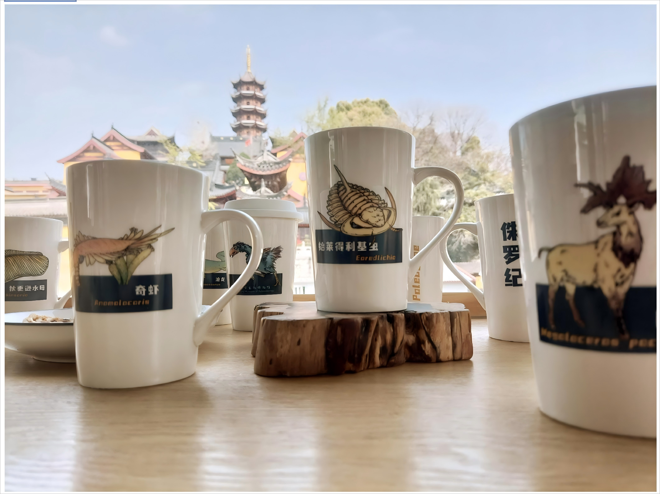在漫長的生命演化史中,曾經出現過如奇蝦、始祖鳥和霸王龍等標志性生物。每個古生物的形象都是地球歷史上一段特定時期的縮影,也激發了人們對史前世界的無限想象。我們將這些形象藝術化的制作在水杯上